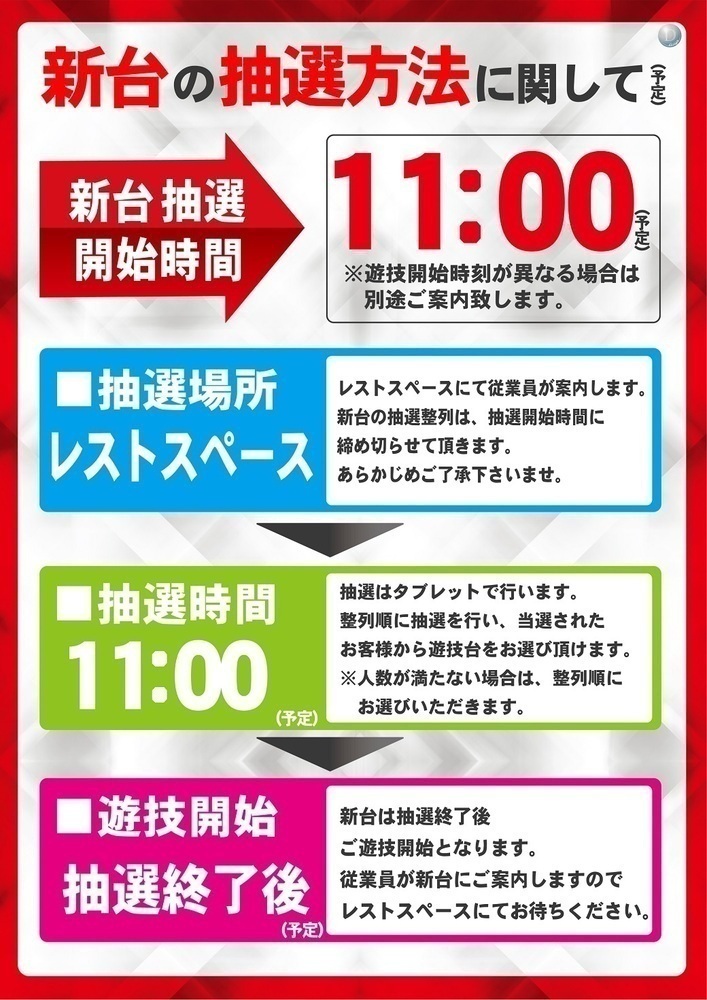 ■9時開店の場合 ⇒ 抽選時間 8:45(予定)