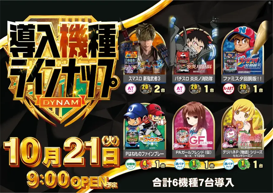 お客様、ご家族ご友人 お誘い合わせの上 ダイナム足利店 10月21日(火)新台入替(予定) 是非お越し下さいませ