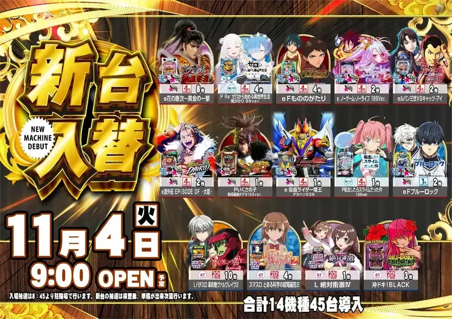 本日もダイナム相模原店のブログを閲覧いただき誠にありがとうございます。 11月17日新台入替予定!詳しくは記事をチェック!!!! |