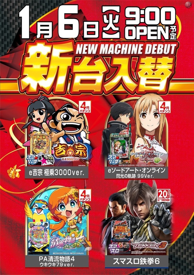 1月6日(火)新台入替!(予定)