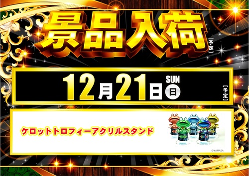 ■□■□■□■□■□■□■□ 12月はダイナム観音寺店 ☆彡誕生月間☆彡 12月21日(日)朝9時OPEN!! 『新景品入荷』♪(予定) ■□■□■□■□■□■□■□ 入荷景品はコチラ ☆彡ケロットトロフィー☆彡 ☆彡アクリルスタンド☆彡 ■□■□■□■□■□■□■□ 従業員一同 お待ちしております♪