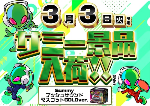■□■□■□■□■□■□■□ 3月3日(火)朝9時OPEN!! 『新景品入荷』♪(予定) ■□■□■□■□■□■□■□ 入荷景品はコチラ ☆彡Sammy☆彡 【プッシュサウンド】 【マスコットGOLDver.】 ■□■□■□■□■□■□■□ 従業員一同 お待ちしております♪