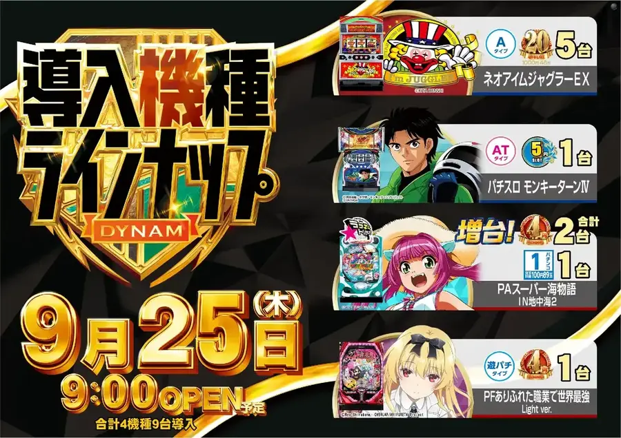 9月25日≪木曜日≫開店‼ スロット2機種・パチンコ2機種導入