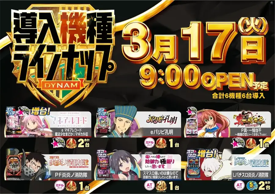 3月17日≪火曜日≫開店‼ パチンコ4機種・スロット2機種導入