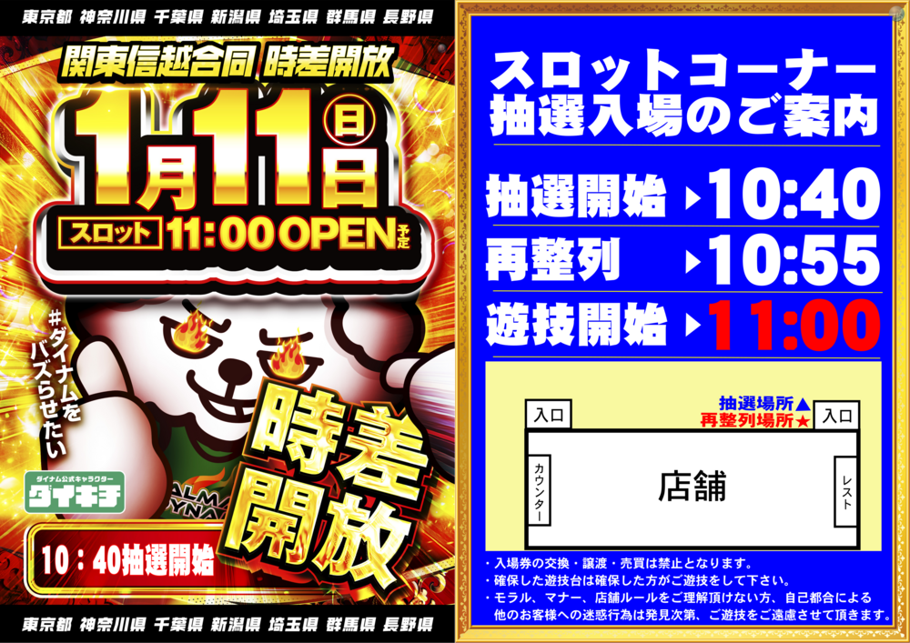 スロットコーナーのみ入場時間が異なりますのでご注意下さい
