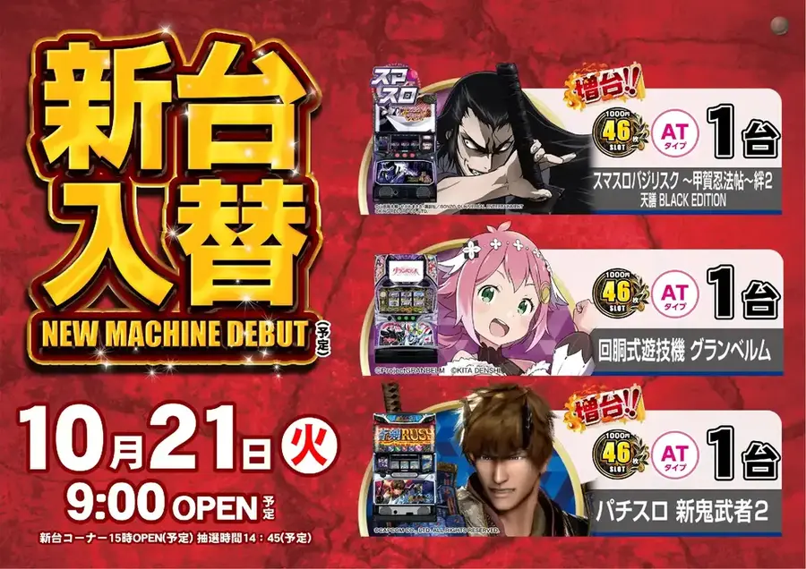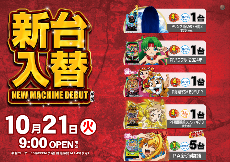 パチンコ5機種 スロット3機種 合計12台(予定)