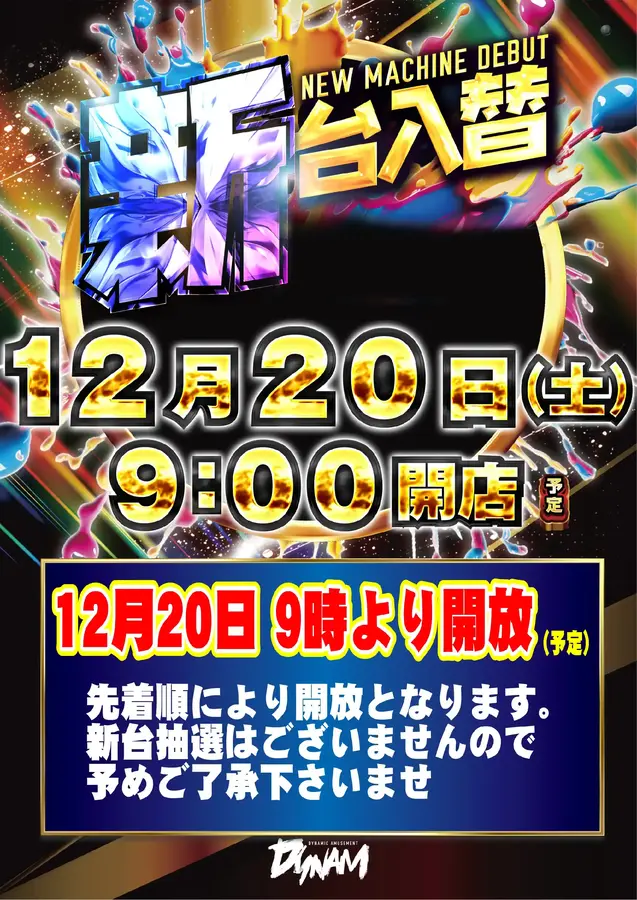 いつもダイナム三重名張店HPを ご覧いただきありがとうございます 12月20日(土) |