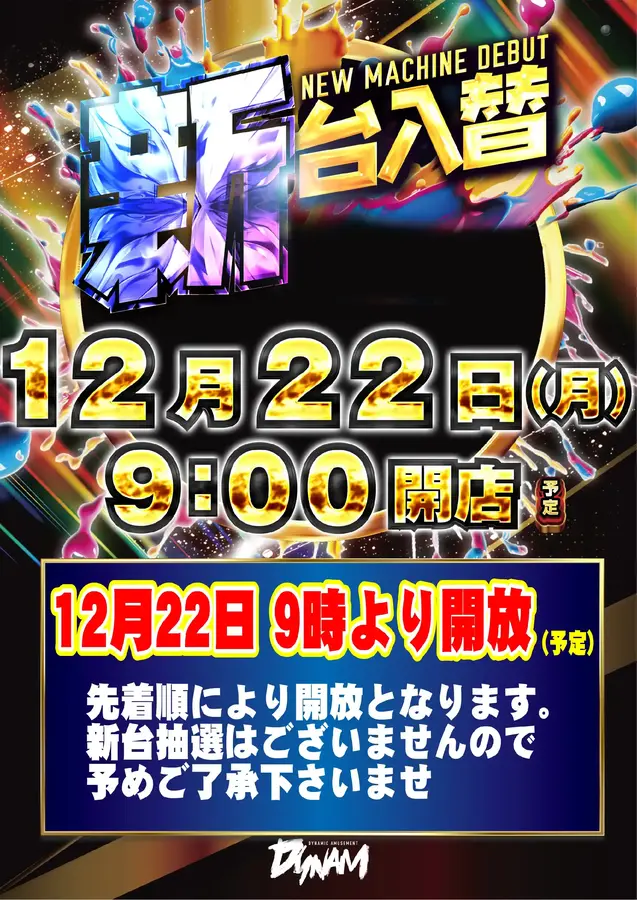 いつもダイナム三重名張店HPを ご覧いただきありがとうございます 12月22日(月) |