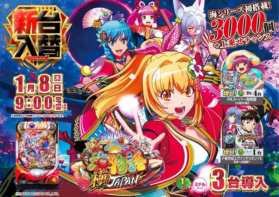 新台入替 1月8日(木) 9:00オープン(予定)