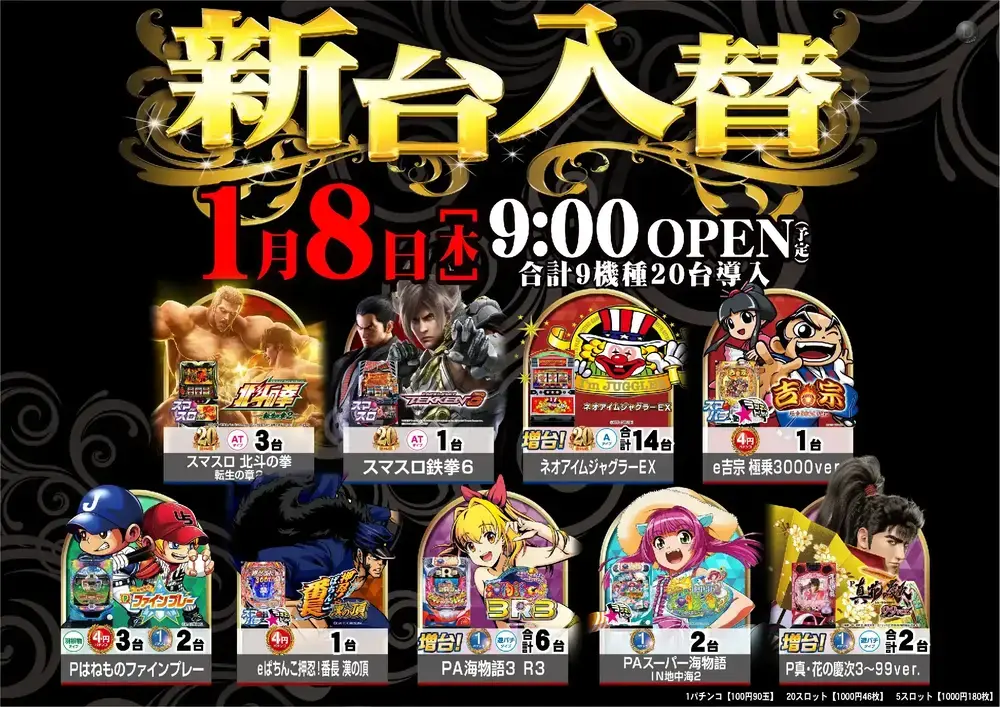 導入台数 4円パチンコ 3台 1パチンコ(100円90玉) 2台
