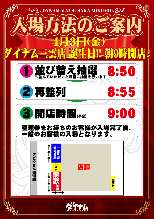ダイナム三雲店 16周年誕生日 朝9:00OPEN(予定) ★★★★★★★★★★★