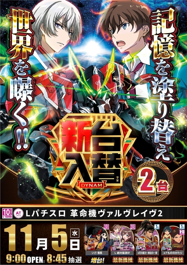 11月5日(水) 新台入替へご来店お待ちしてます。 |