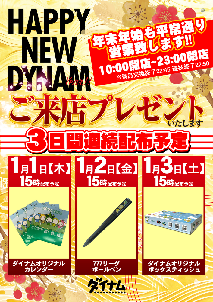 また1~3日までの3日間は15時に恒例のご来店プレゼントを配布予定!