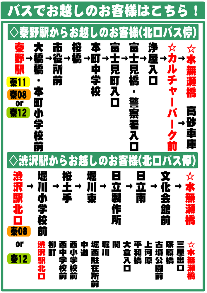 バスでお越しのお客様 店舗最寄りのバス停は 【水無瀬橋】 【運動公園前】 になります