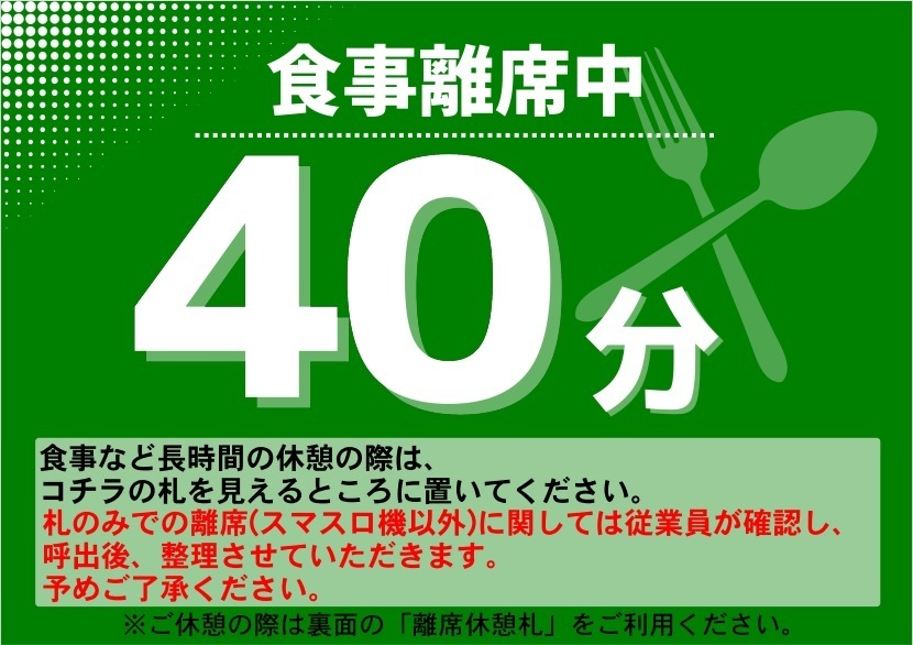 【10分休憩札・食事札を利用される際の注意点】