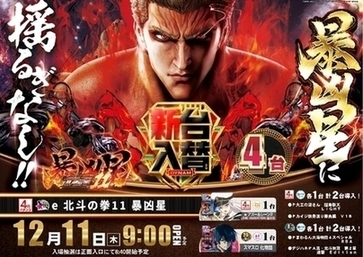«4円パチンコ» e北斗の拳11 暴凶星 ラッキートリガー搭載 【4台】 eアズールレーン2 THE ANIMATION 超次元 ライトミドルタイプ【1台】 P大工の源さん 超韋駄天LIGHT 遊パチタイプ【1台】 Pカイジ鉄骨渡り 勝負編 V1B 遊パチタイプ【1台】