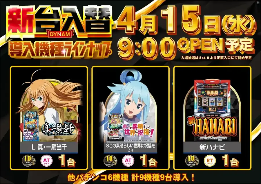 計9機種9台導入! ご不明な点がございましたら、お気軽に当店従業員にお尋ねくださいませ。ご来店心よりお待ち致しております。