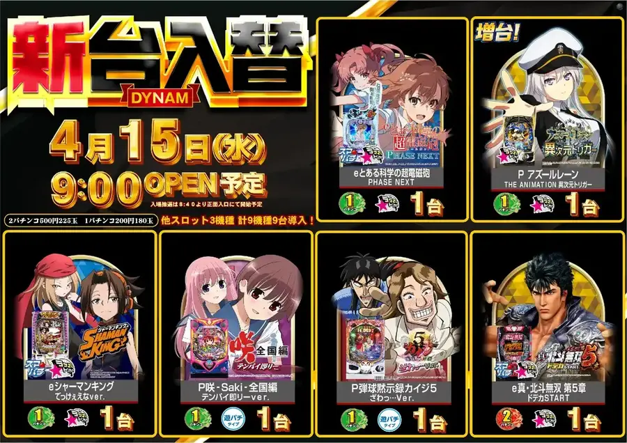 ★1パチンコ(200円180玉) ★ eとある科学の超電磁砲 PHASE NEXT P アズールレーン THE ANIMATION 異次元トリガー eシャーマンキング でっけぇえなver. P咲‐Saki‐全国編 テンパイ即リーver. P弾球黙示録カイジ5 ざわっ…Ver. e真・北斗無双 第5章 ドデカSTART