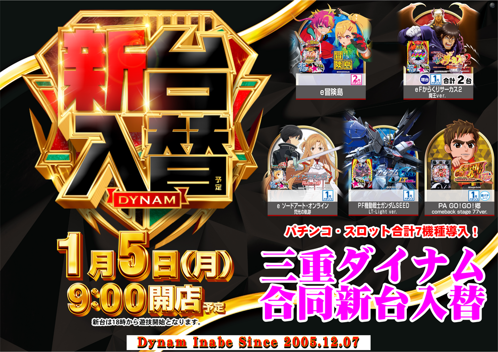 いつもダイナム三重いなべ店の ホームページをご覧頂き、誠にありがとうございます