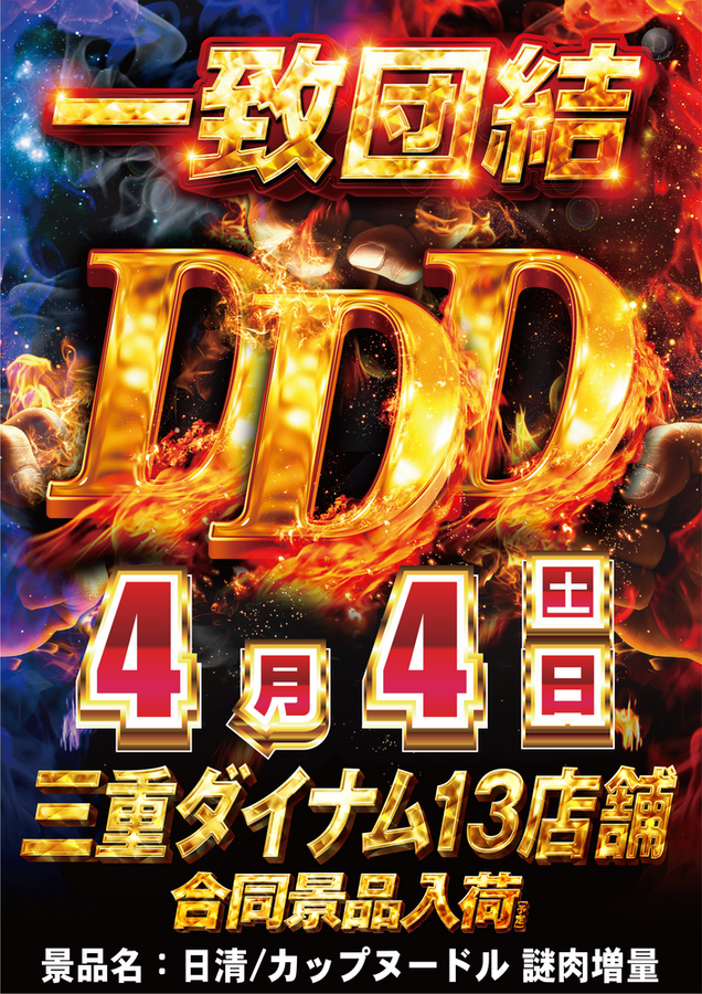 4月4日 (土) 三重ダイナム13店舗