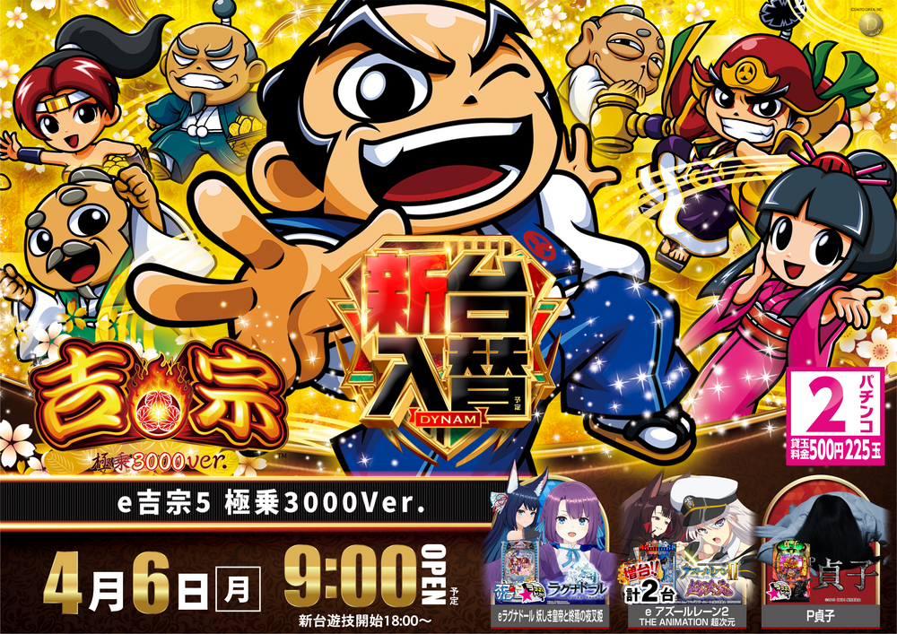 4月6日(月)はダイナム勝山店の新台入替