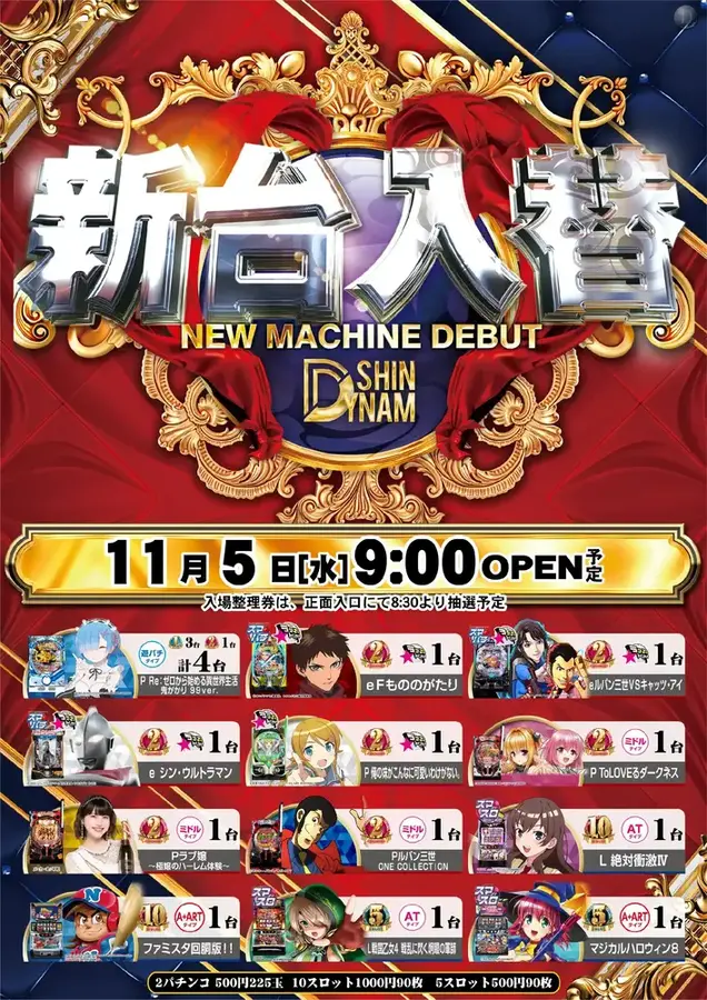 ダイナム香川高松郷東店HPをご覧頂き ありがとうございます 11月5日(水)は