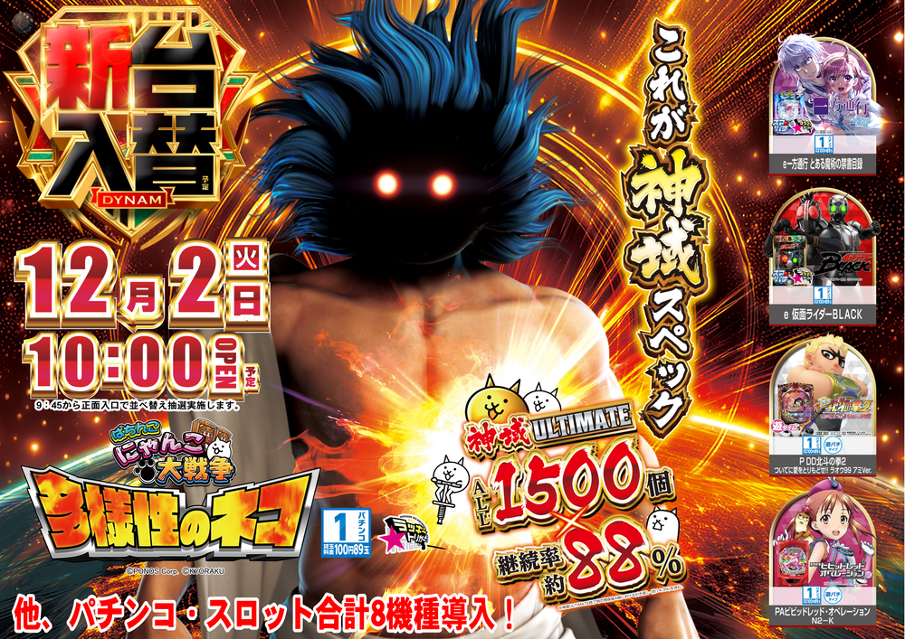 ☆☆☆☆☆☆☆☆☆☆☆ 12月2日(火)新台入替 10:00OPEN(予定) ☆☆☆☆☆☆☆☆☆☆☆