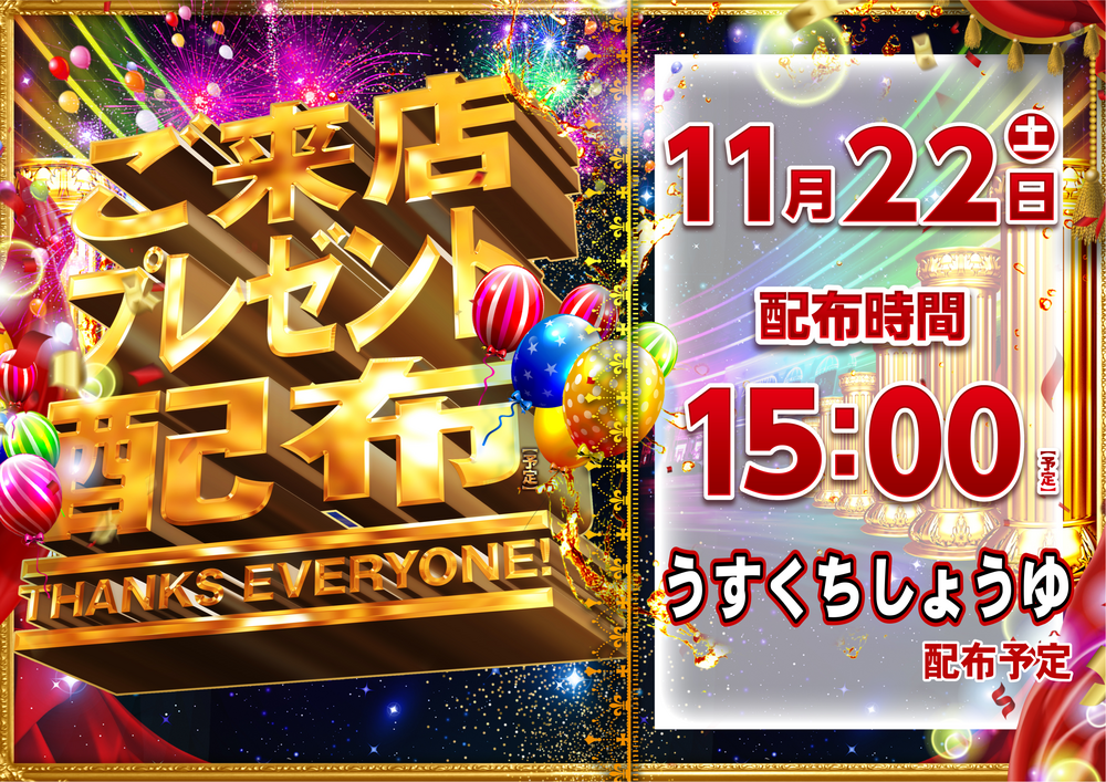 11/22(土)はご来店プレゼント配布予定