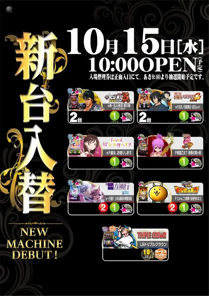 開店時間:10:00(予定) 入場抽選:09:40(予定)